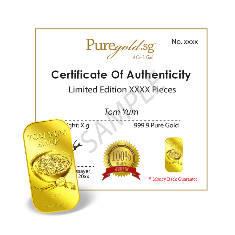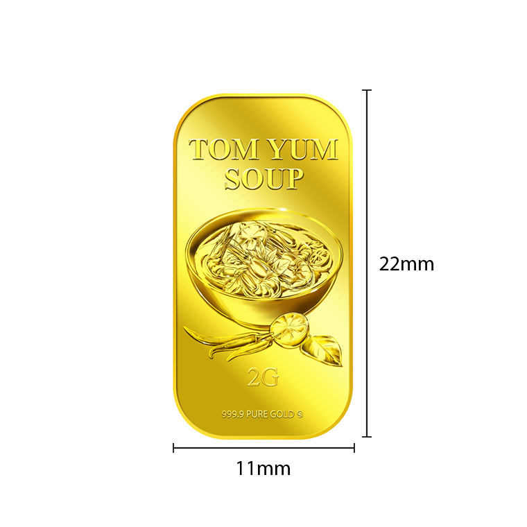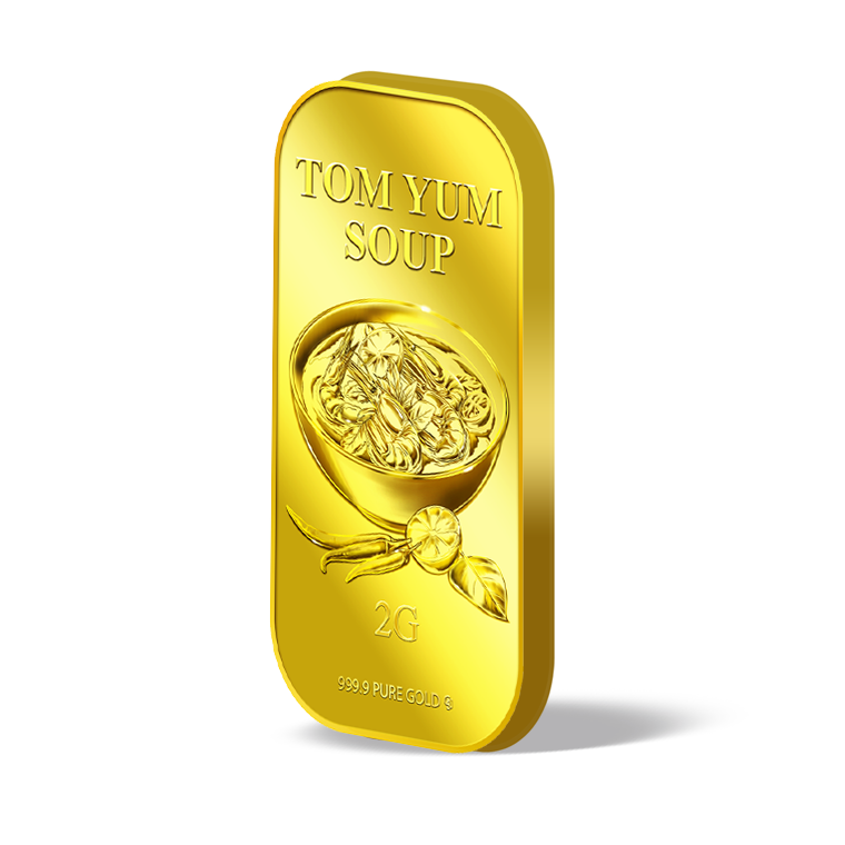 The image is embossed on a 2 grams 999.9 fine gold bar.