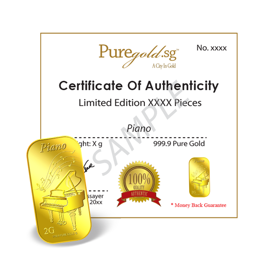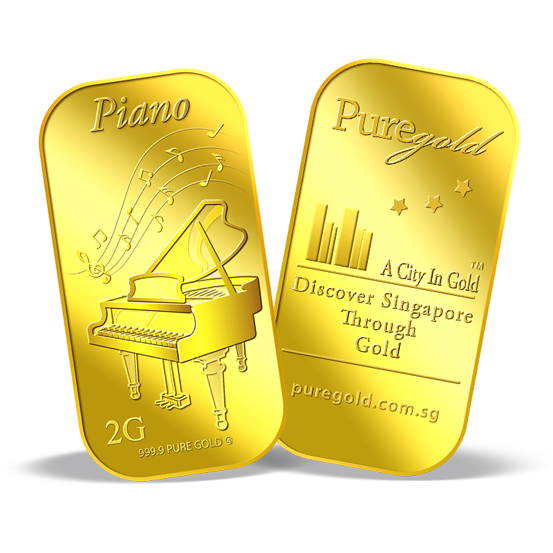 The image is embossed on a 2 grams 999.9 fine gold bar.