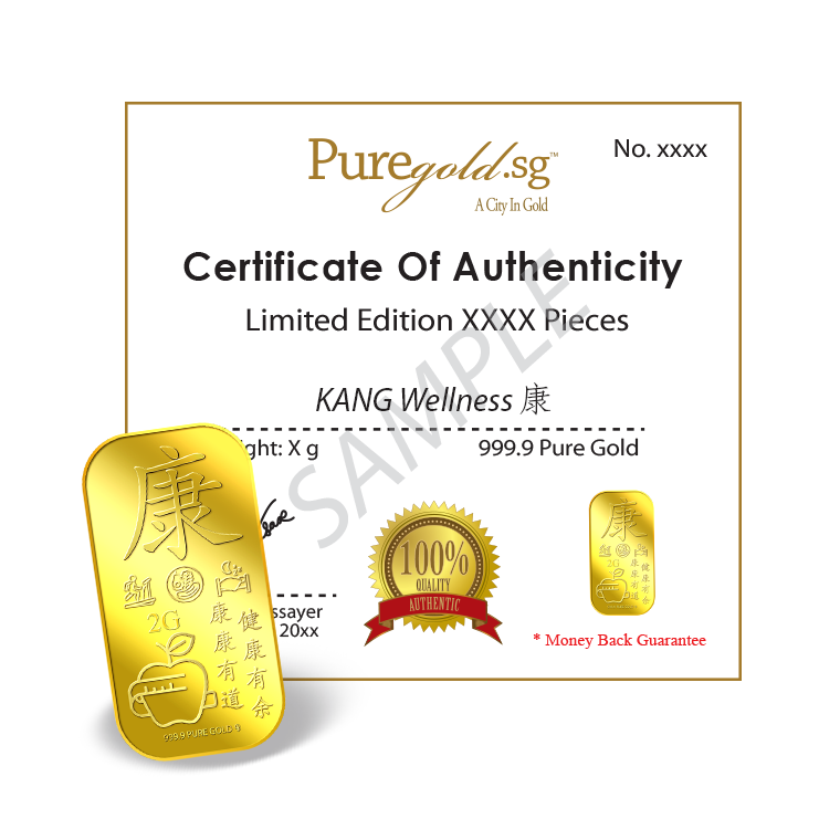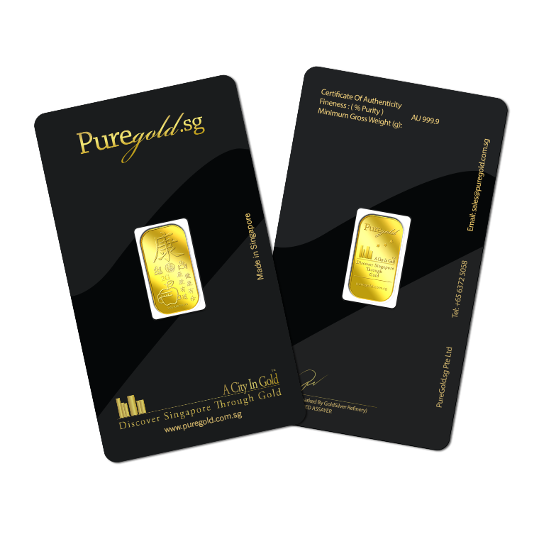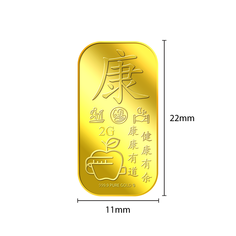 The image is embossed on a 2 grams 999.9 fine gold bar.