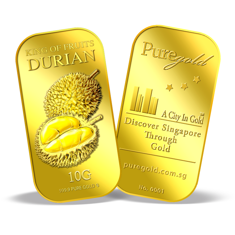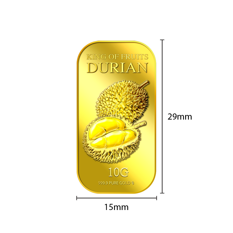 The image is embossed on a 10 grams 999.9 fine gold bar.