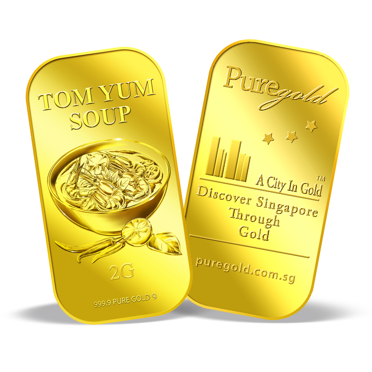The image is embossed on a 2 grams 999.9 fine gold bar.