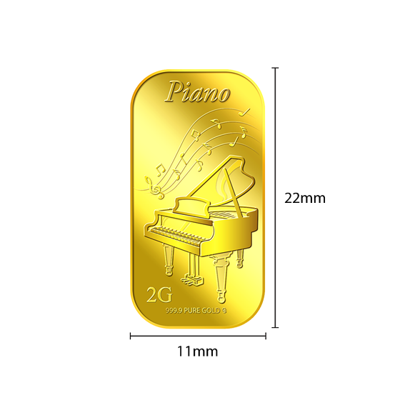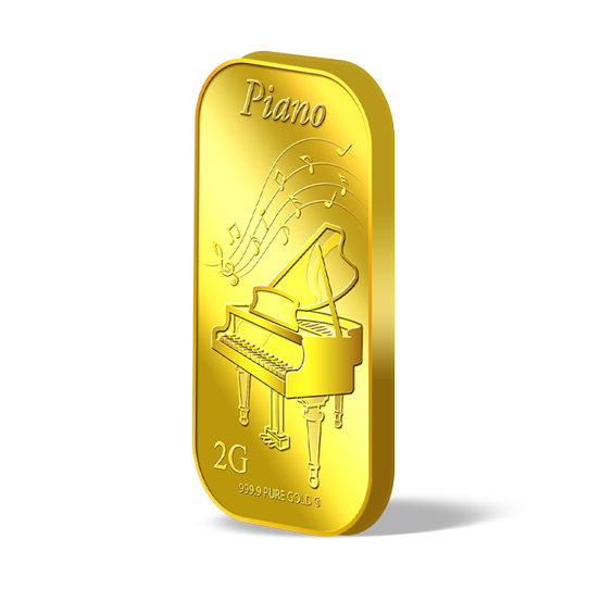 The image is embossed on a 2 grams 999.9 fine gold bar.